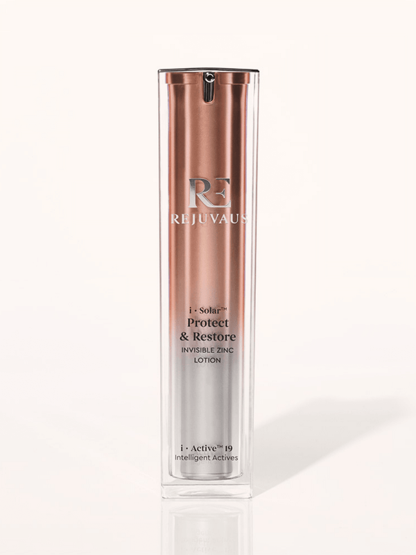Enter Rejuvaus: i • Solar™ Protect & Restore INVISIBLE ZINC LOTION. Harnessing the power of pure mineral filters with a high concentration of zinc and titanium dioxide, expertly reflecting UV energy away from your skin for long-lasting, skin-friendly protection.